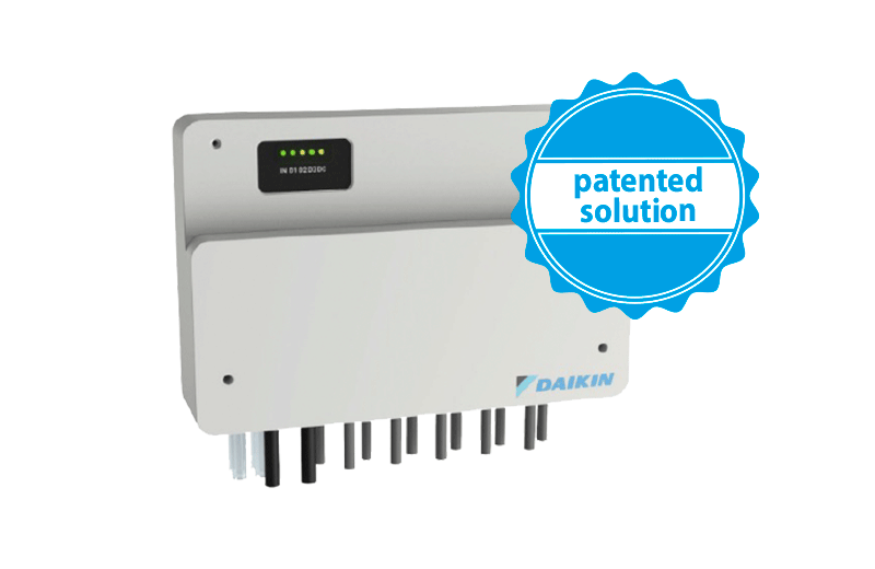 Los sistemas de ventilación de Daikin se pueden integrar en una solución total para todo el edificio. Gracias a nuestra conexión DX exclusiva, puede conectar la unidad de tratamiento de aire a cualquier unidad de condensación Inverter VRV o ERQ de Daikin. La válvula de expansión integrada y la caja de control hacen que esta sea una verdadera solución de enchufar y usar. Sin necesidad de configuraciones ni trabajo de diseño adicionales para el instalador, puede seleccionar sus ajustes óptimos al igual que lo haría con cualquier otro dispositivo de ventilación.