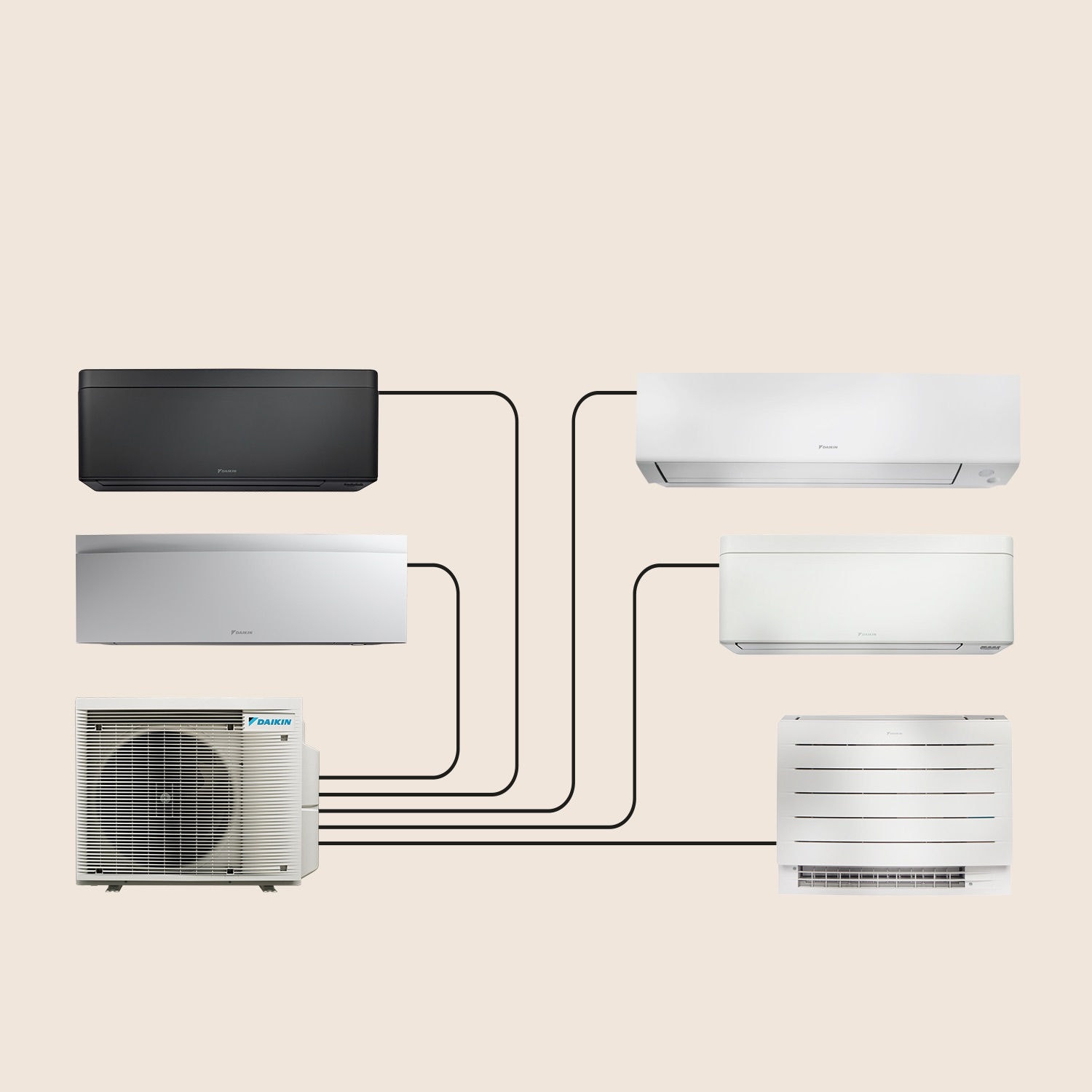 Selecciona a partir de nuestra amplia gama de equipos de aerotermia aire-aire para conectar tu unidad exterior Multi+
